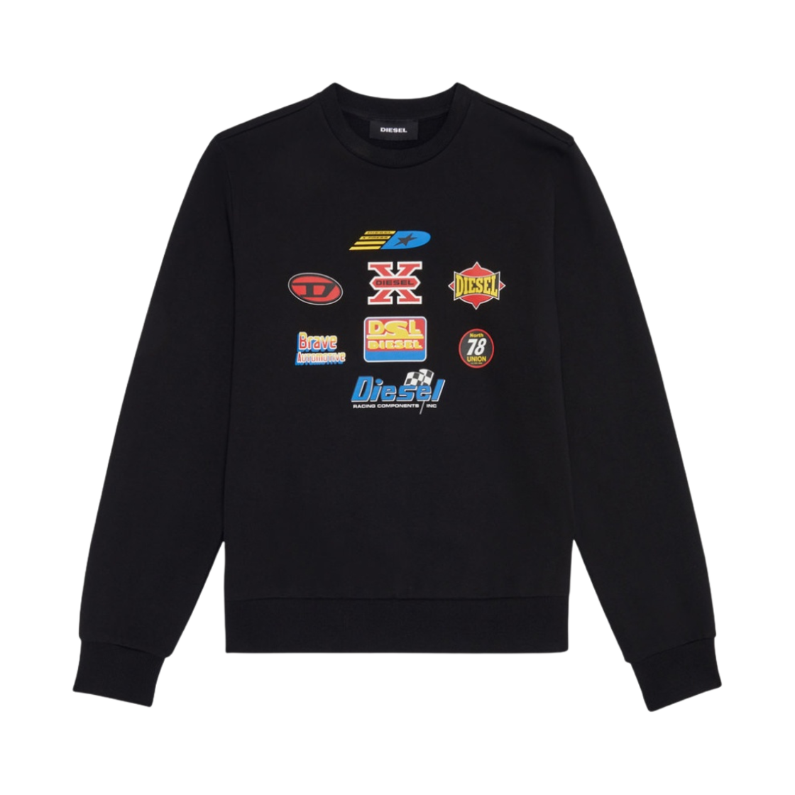디젤 S-진-K24 레이싱 로고 프린트 스웨트셔츠 블랙