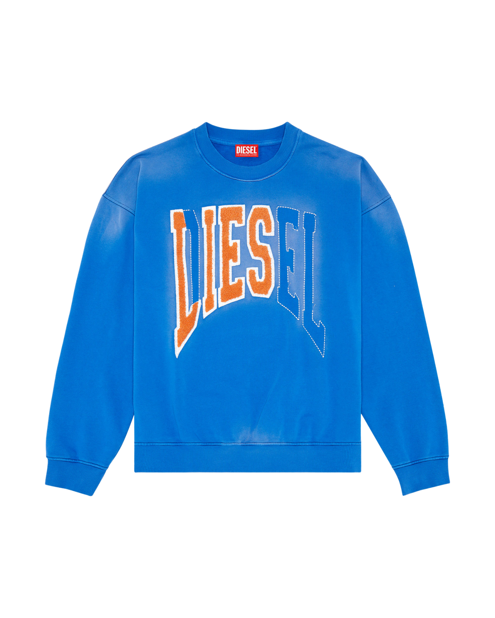 디젤 스웨트셔츠 디스트레스드 플록 로고 화이트 블루
