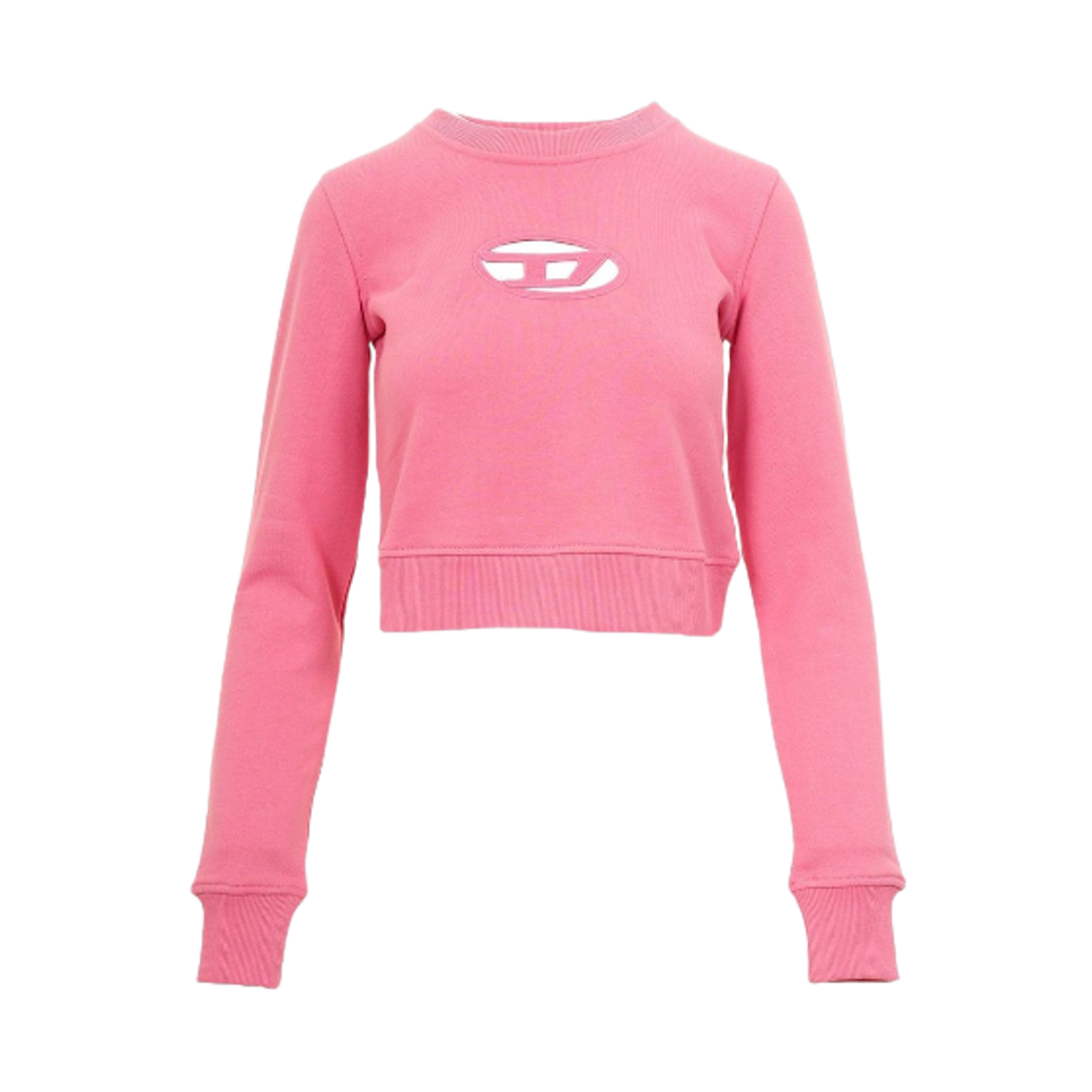 (W) 디젤 F-슬리미-Od 컷아웃 로고 크롭 스웨트셔츠 핫 핑크