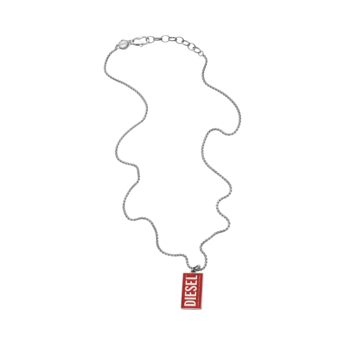디젤 Dx1446 레드 에나멜 스테인리스 스틸 체인 네클리스 실버