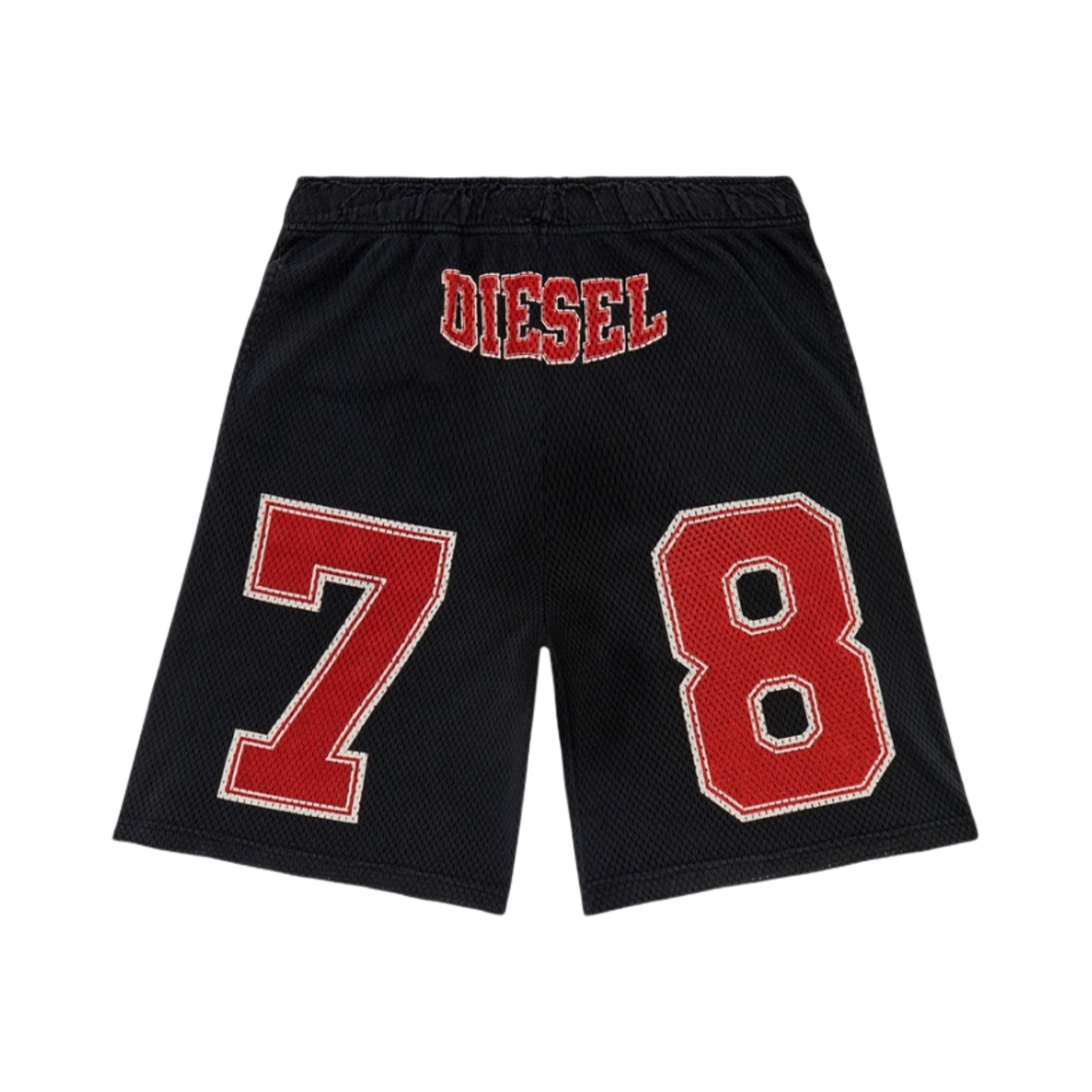 디젤 P-테인-쇼츠 컬리지에이트 로고 매쉬트림 쇼츠 블랙