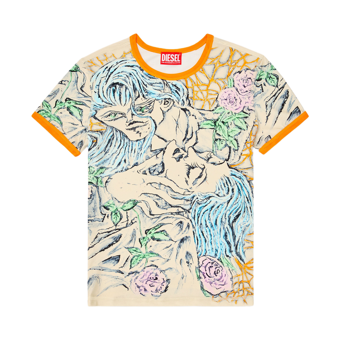 (W) 디젤 T-언큐티-롱-Q2 티셔츠 타투 프린트 베이지