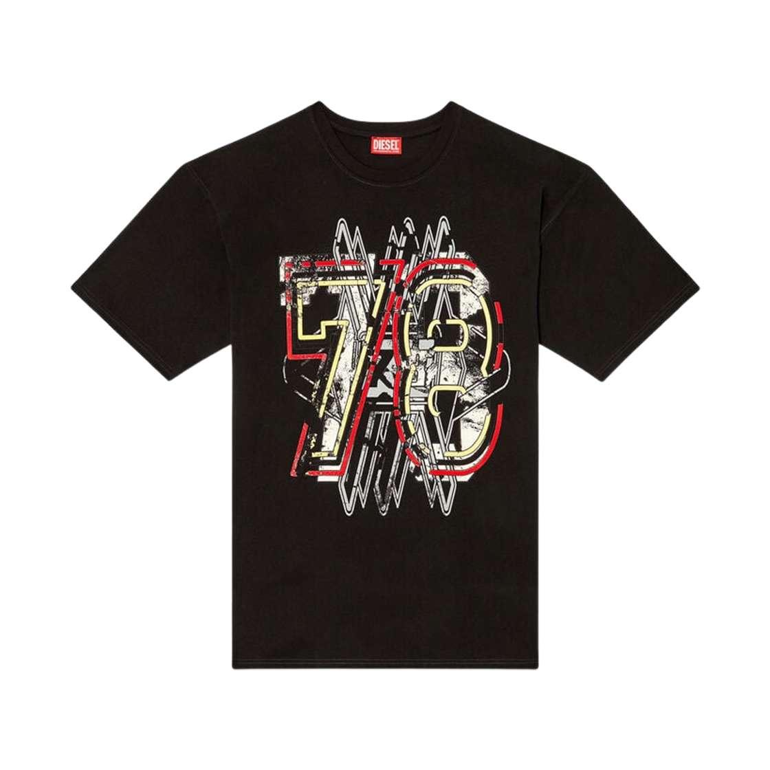 디젤 디스트레스드 플록 로고 T-박스트-N14 티셔츠 블랙