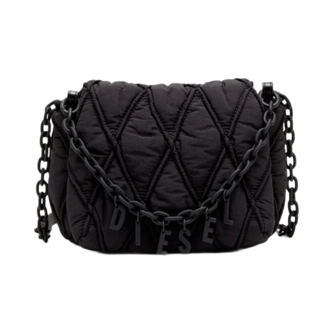 디젤 참-D M-숄더백 퀼티드 메탈릭 나일론 실버