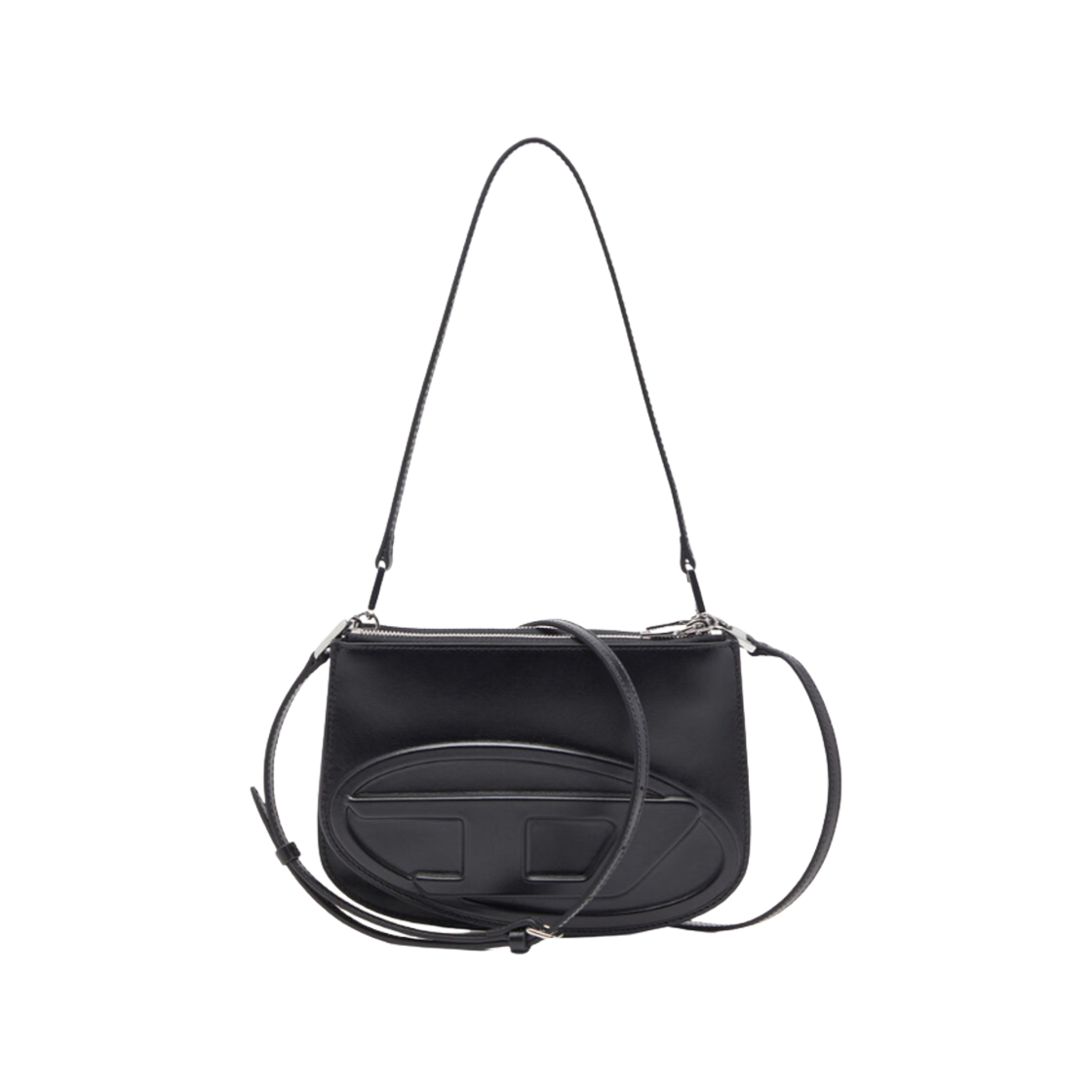 디젤 1DR 트윈-더블-파우치 숄더백 엠보스 레더 블랙