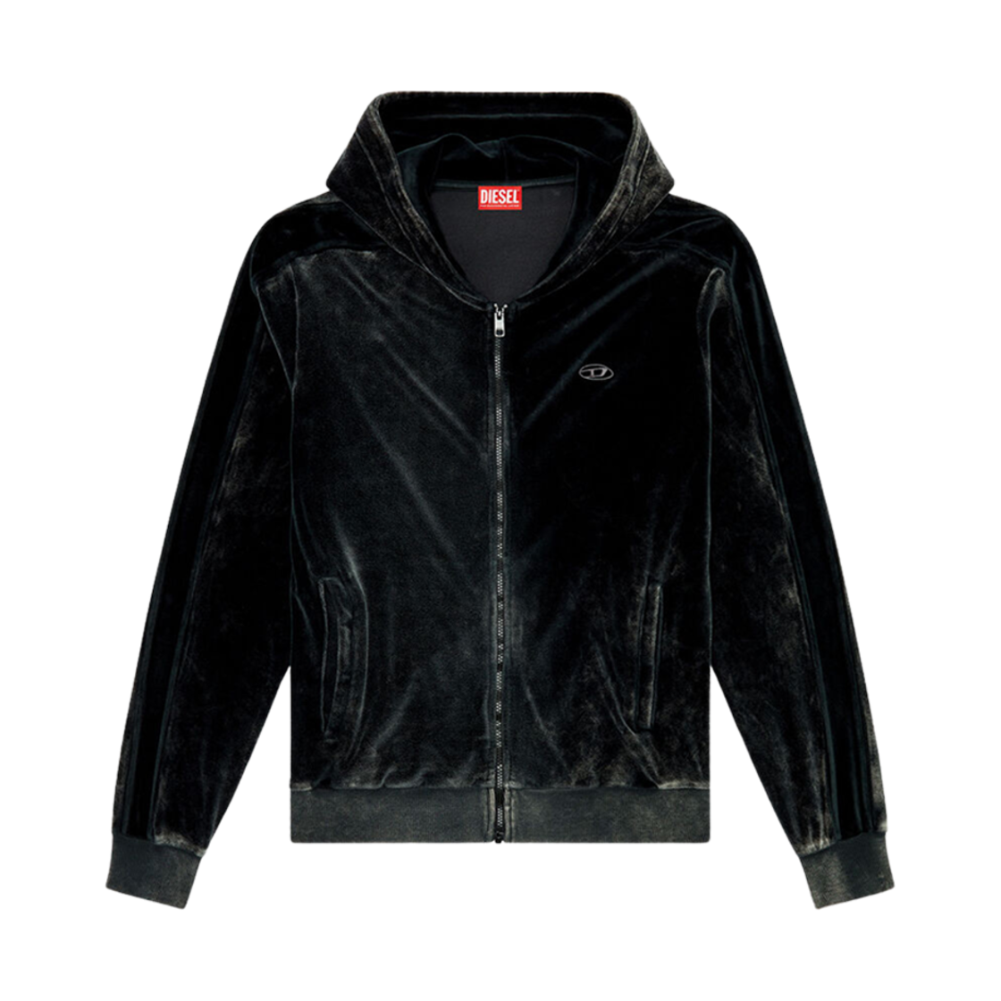디젤 S-어클락 애시드 워시 셔닐 집 업 후드 블랙