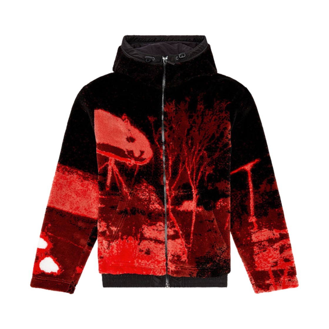 디젤 테디 플리스 후드 그래픽 모티프 후드 레드 블랙