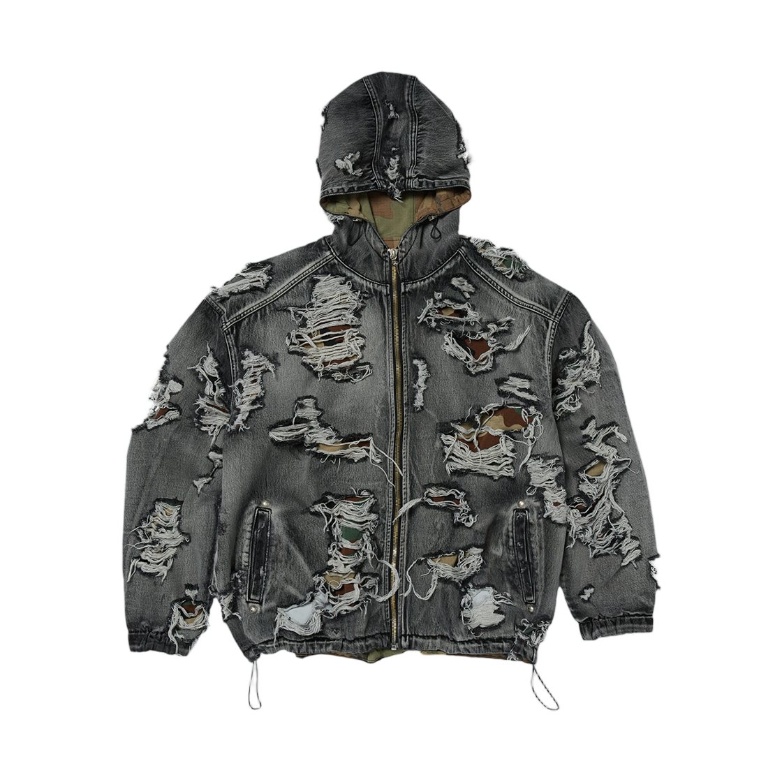떠그 클럽 헬 데님 카모 후드 집업 블랙