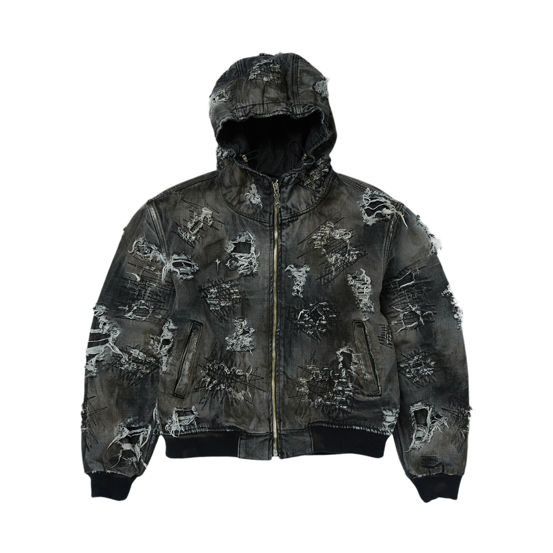 떠그 클럽 하드 워시드 데미지드 데님 후드 집업 블랙