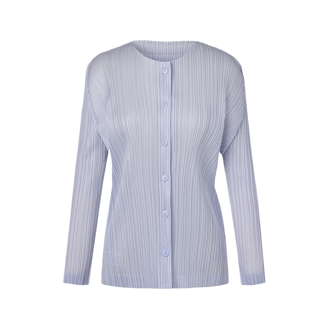 몽플리쎄 여성 라운드넥 라이트 플리츠 가디건 라벤더