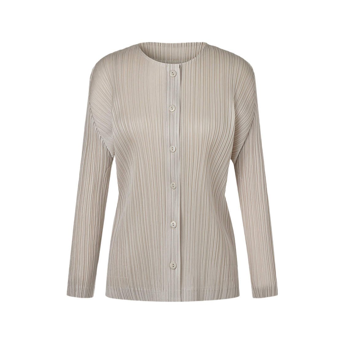 몽플리쎄 여성 라운드넥 라이트 플리츠 가디건 베이지