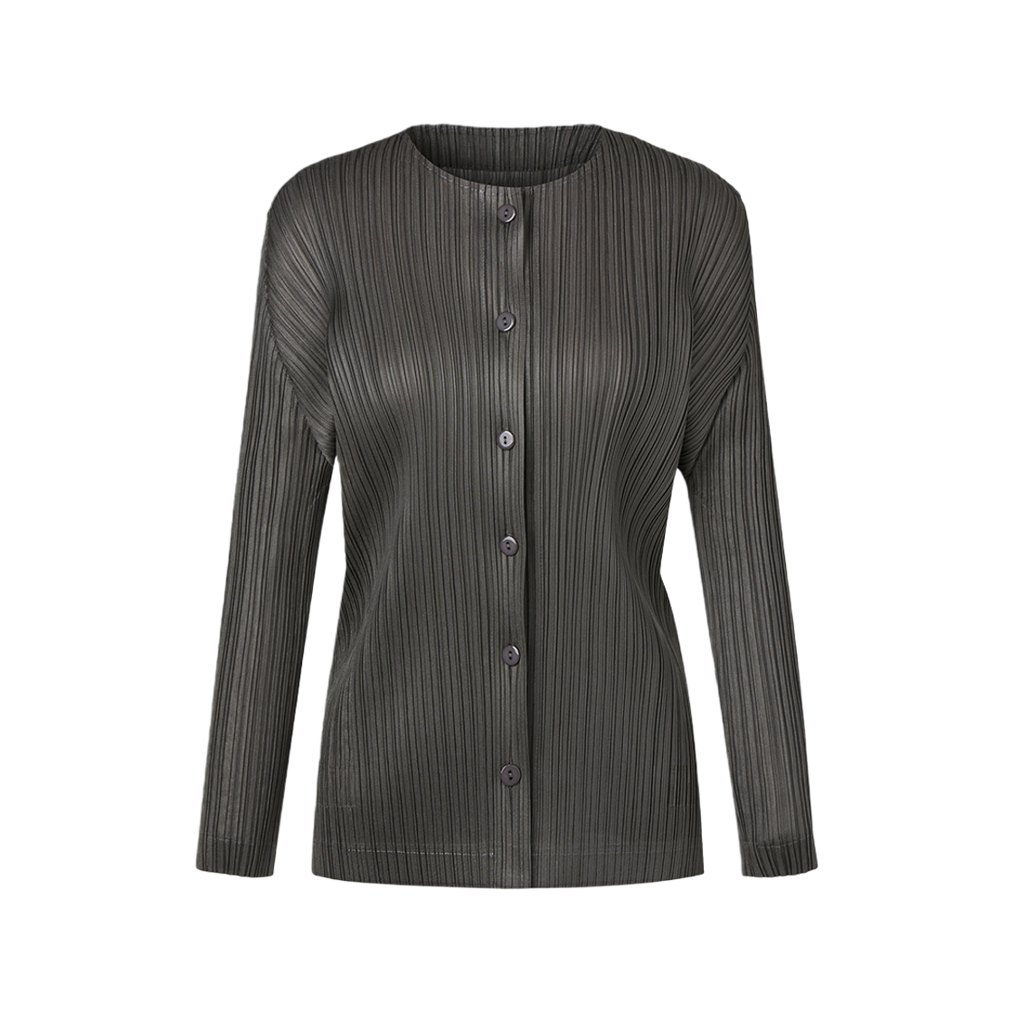 몽플리쎄 여성 라운드넥 라이트 플리츠 가디건 그레이