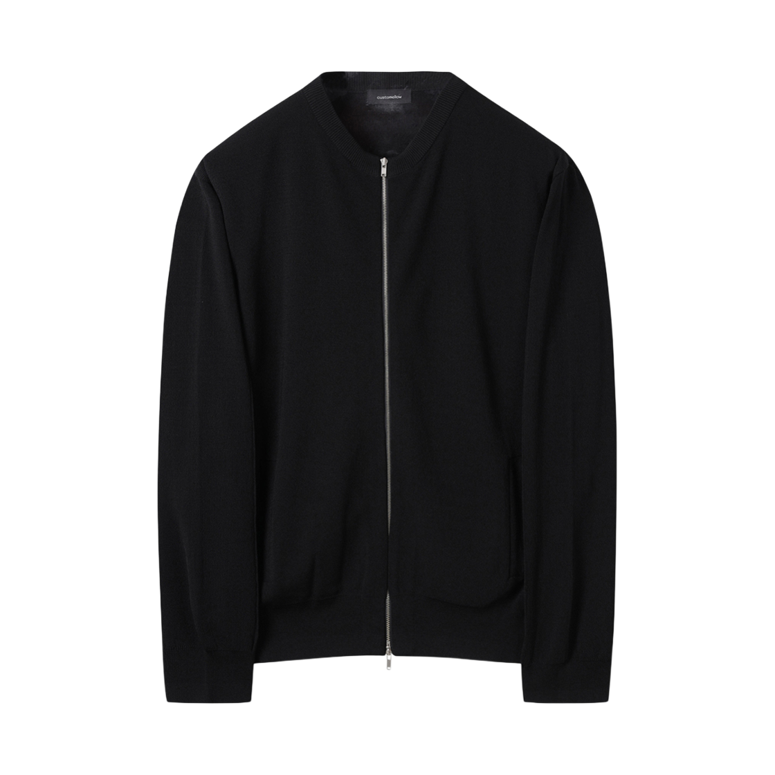 커스텀멜로우 라운드 넥 집업 가디건 블랙