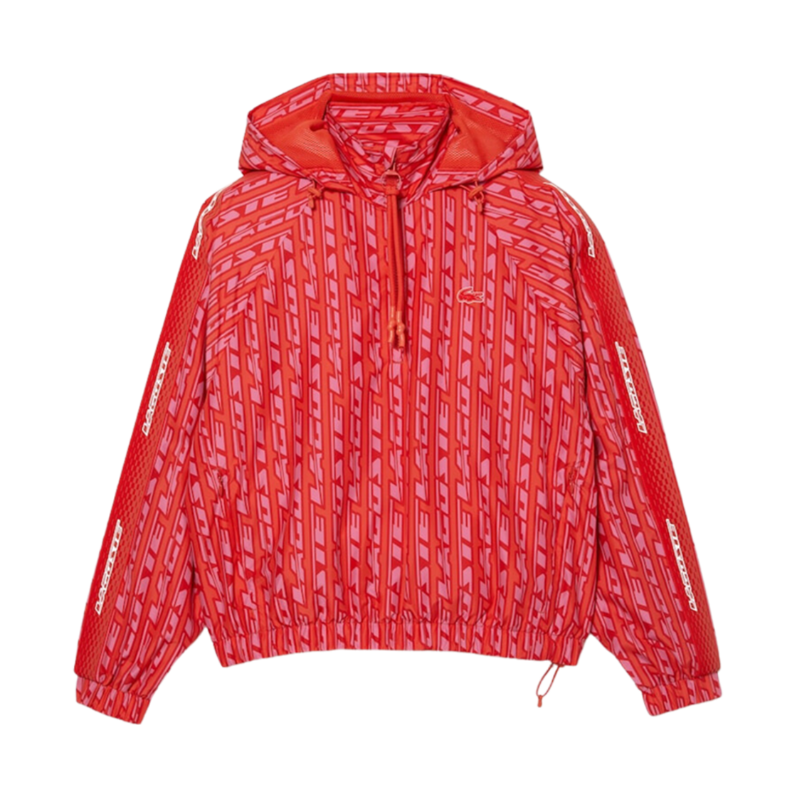 (W) 라코스테 올오버 로고 프린트 후드 아노락 오렌지 레드 핑크
