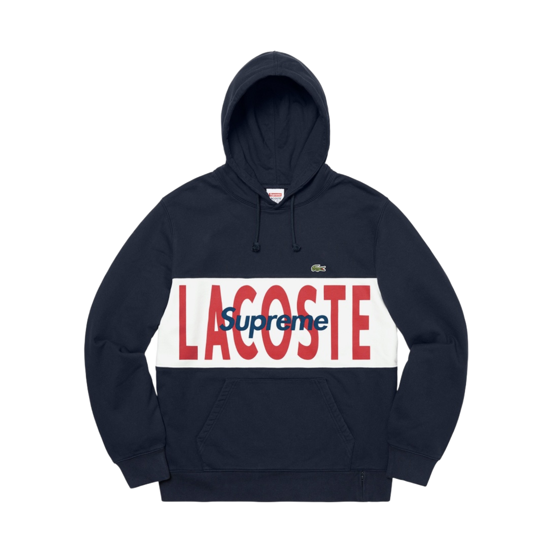 슈프림 x 라코스테 로고 패널 후드 스웨트셔츠 네이비 - 19FW