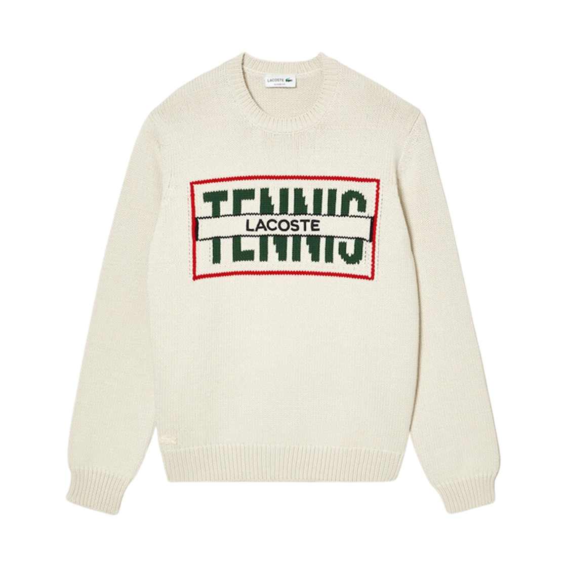 라코스테 테니스 로고 인타르시아 크루넥 풀오버 화이트