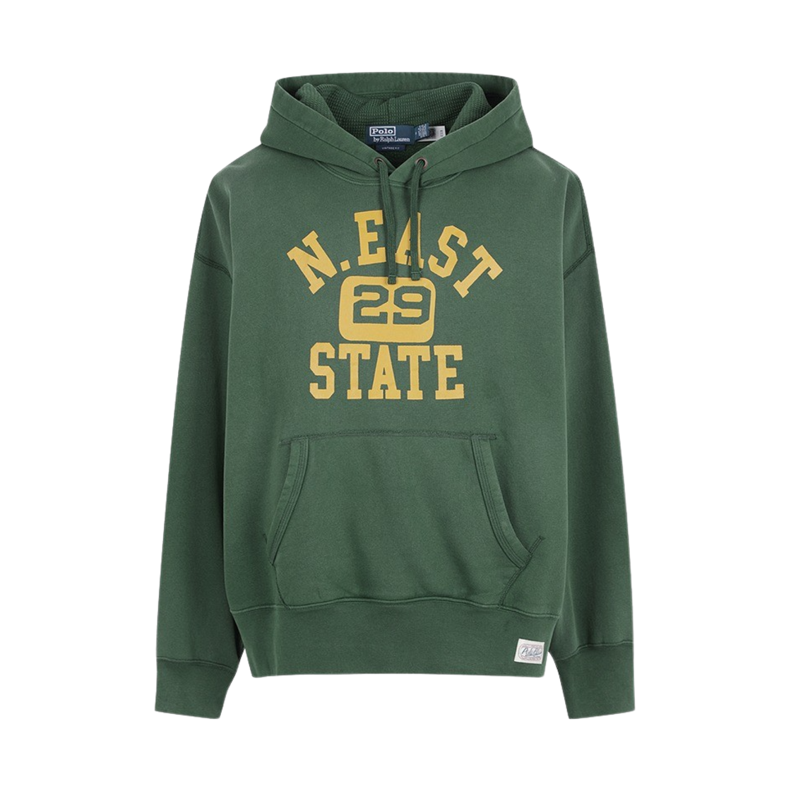 더블알엘 가먼트 다이 플리스 후드 컬리지 그린