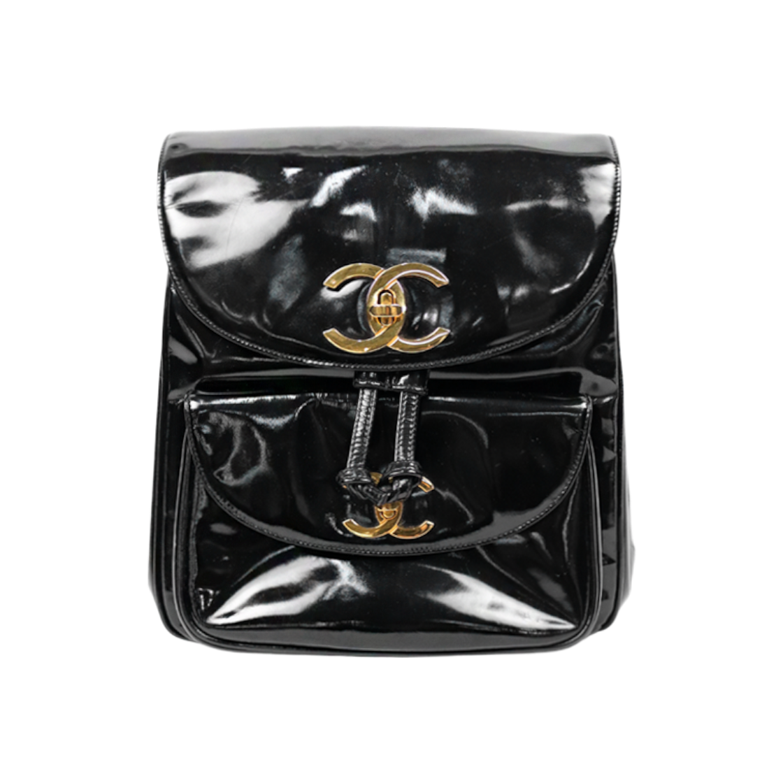 샤넬 블랙 페이던트 플랩 턴락 백팩 A-A46602