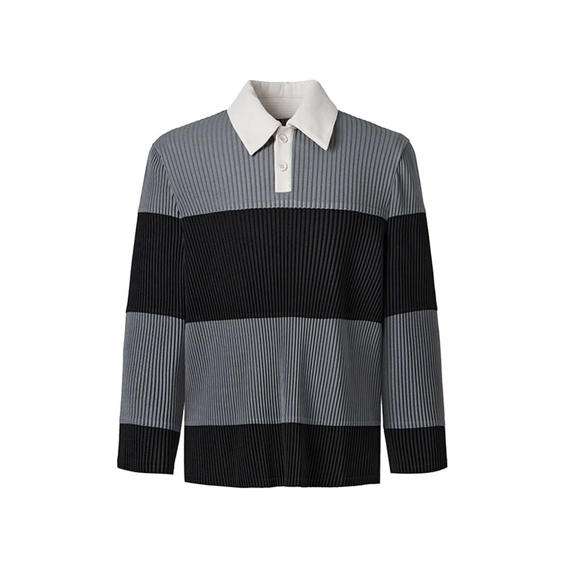 몽플리쎄 여성[공용] 플리츠 스트라이프 럭비 셔츠 블랙