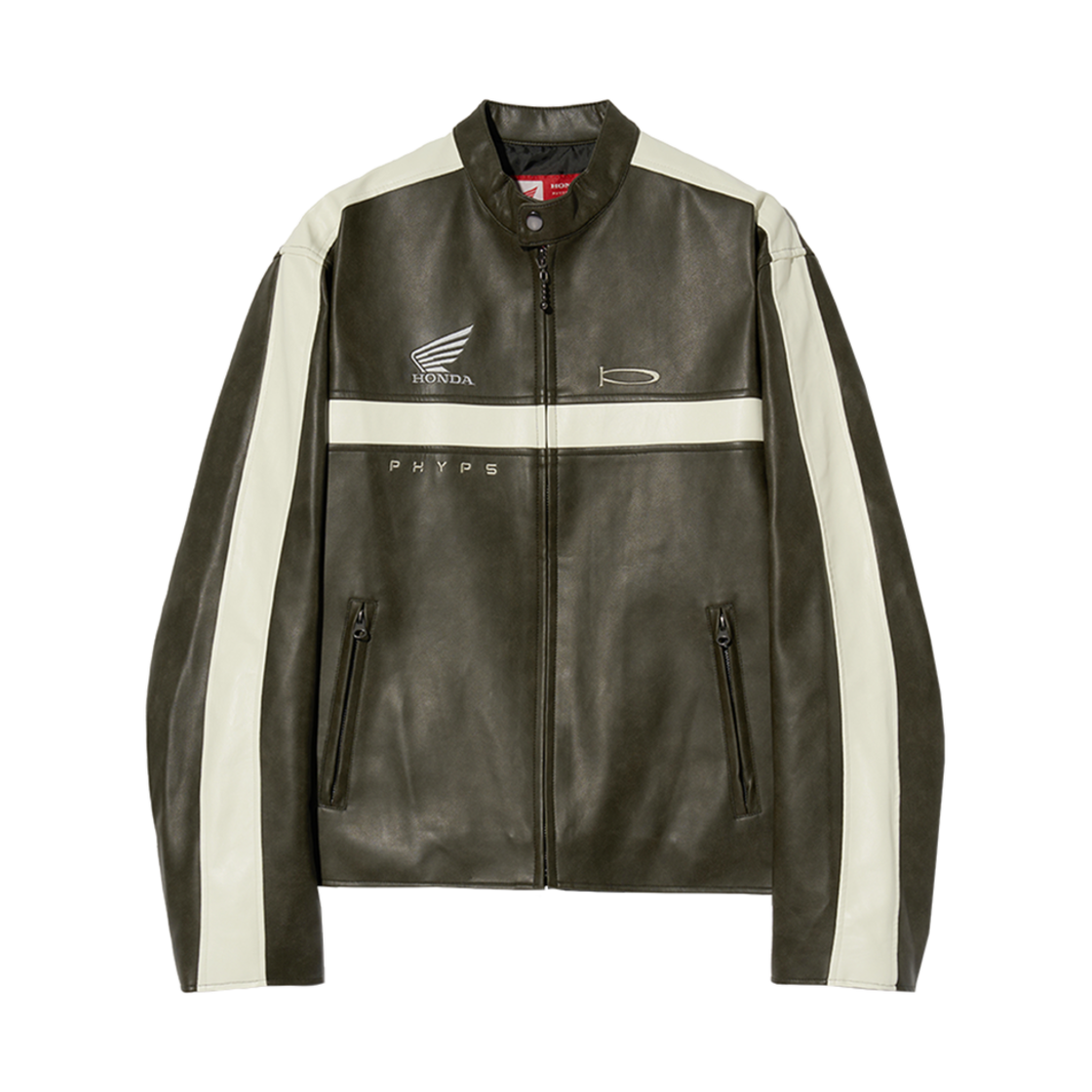 혼다 모터사이클 파이핑 레더 자켓 브라운