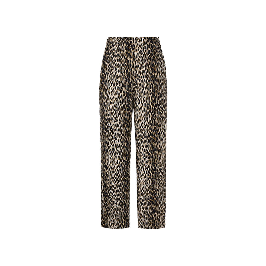 몽플리쎄 여성 레오파드 와이드핏 플리츠 롱 팬츠 브라운