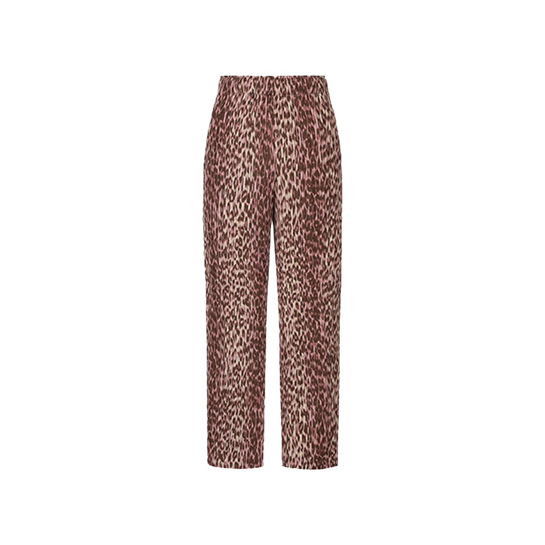 몽플리쎄 여성 레오파드 와이드핏 플리츠 롱 팬츠 핑크