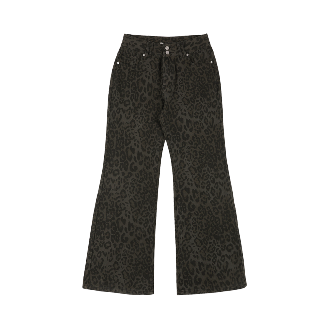 팬시클럽 레오파드 부츠컷 팬츠 카키 그레이