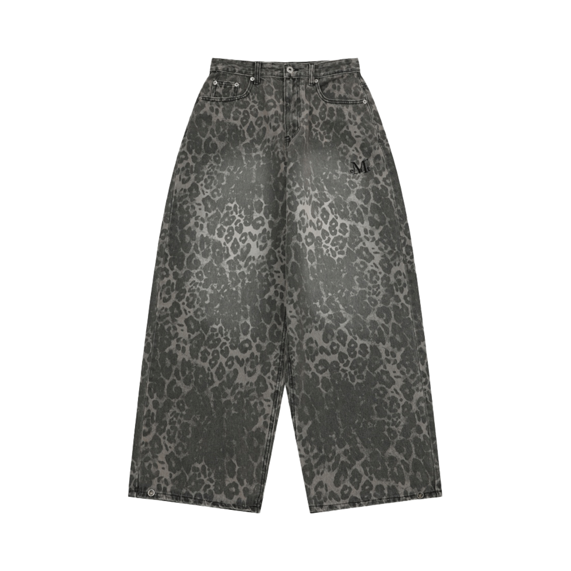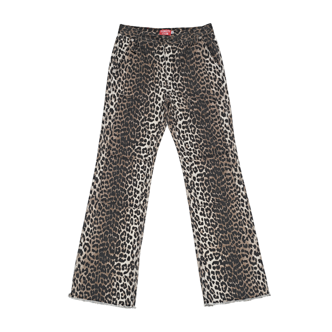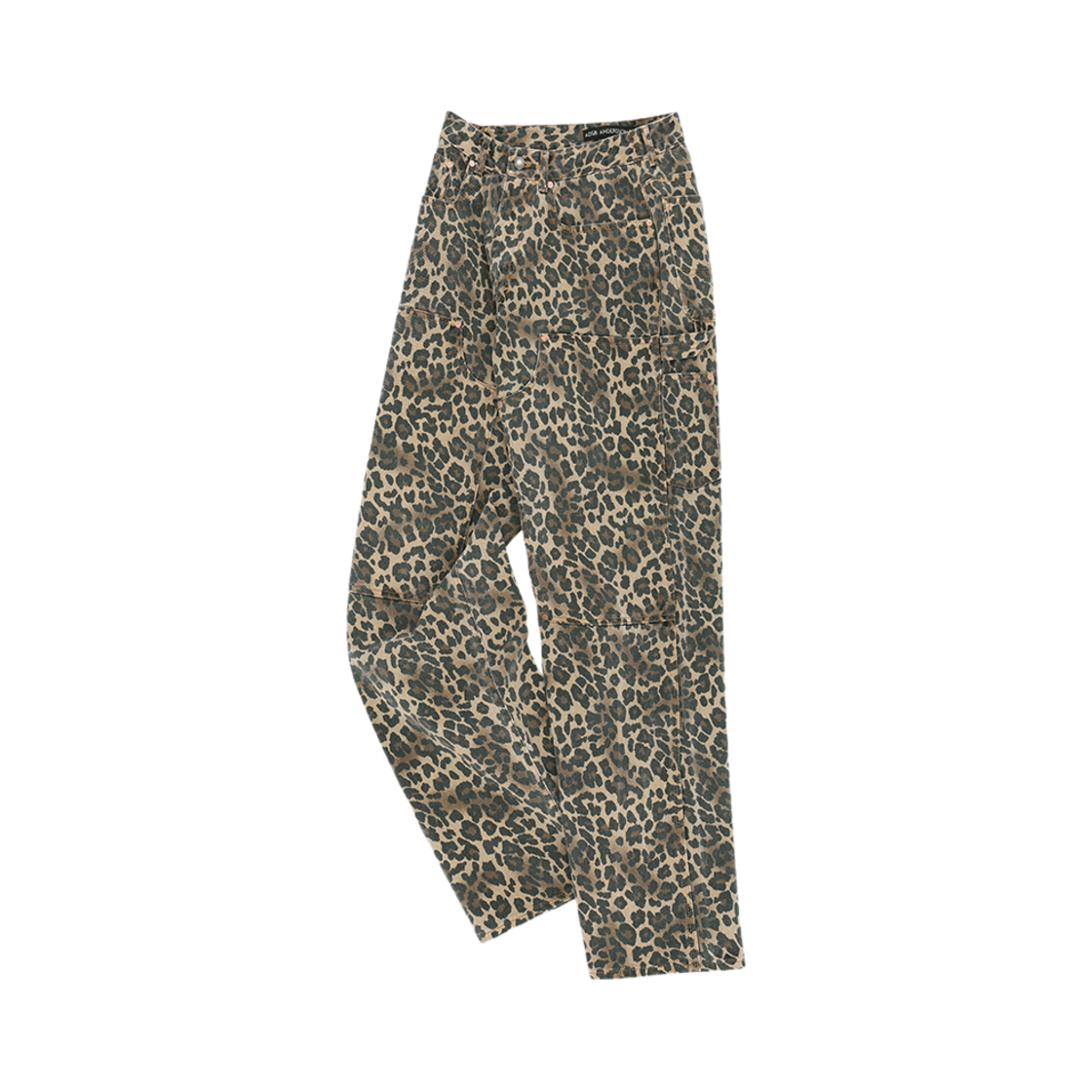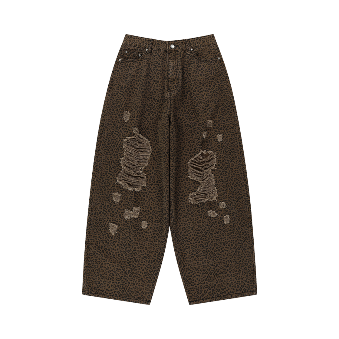 니어 노어 백 크로스 데미지드 와이드 팬츠 레오파드