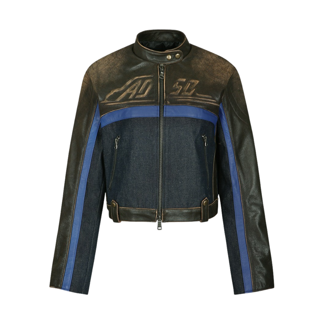 ADSB 앤더슨벨 우먼 데님 콤보 레이싱 레더 자켓 브라운