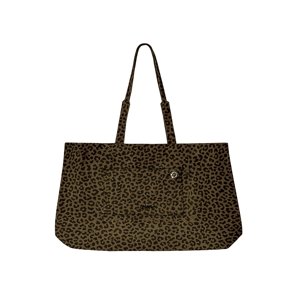 레터리 스웨이드 스퀘어 레오파드 숄더백_카키