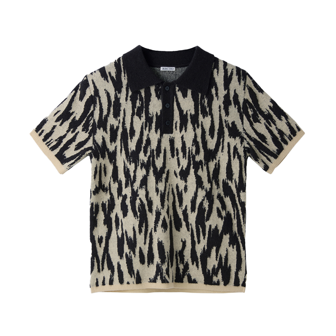 렉토 레오파드 자카드 폴로 니트 탑 다크 브라운