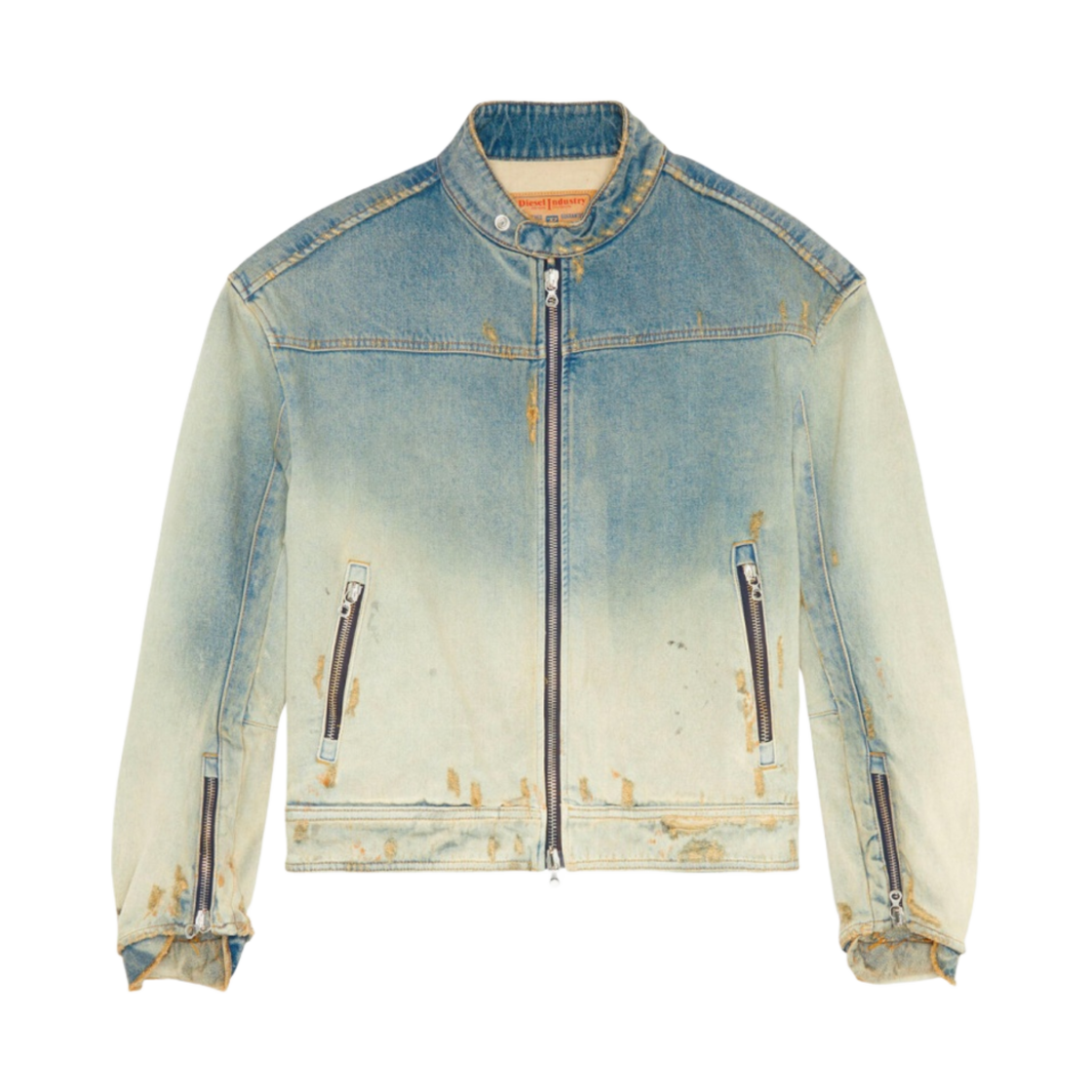 디젤 D-렉토-Fsc 솔라이스드 데님 바이커 자켓 라이트 블루