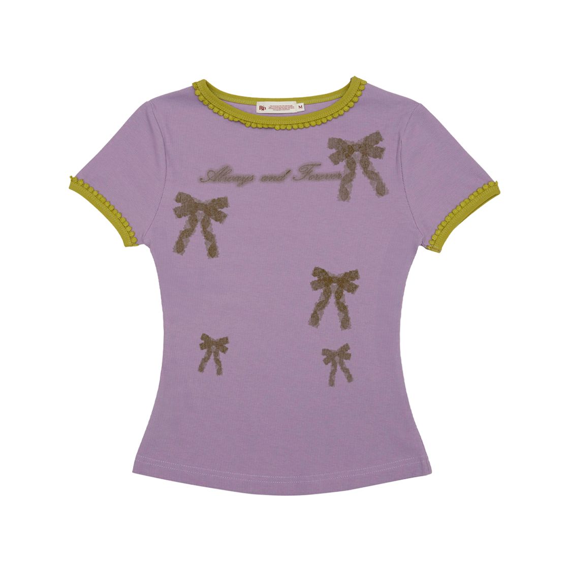 로긴 앤 로지 리본 프린티드 슬림 링거 티셔츠 퍼플