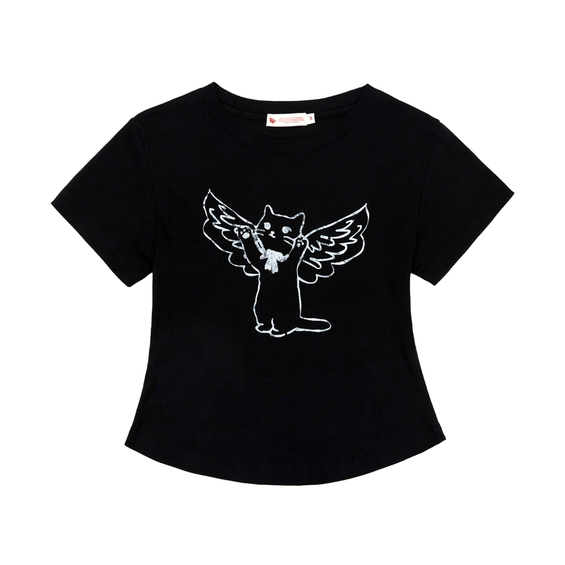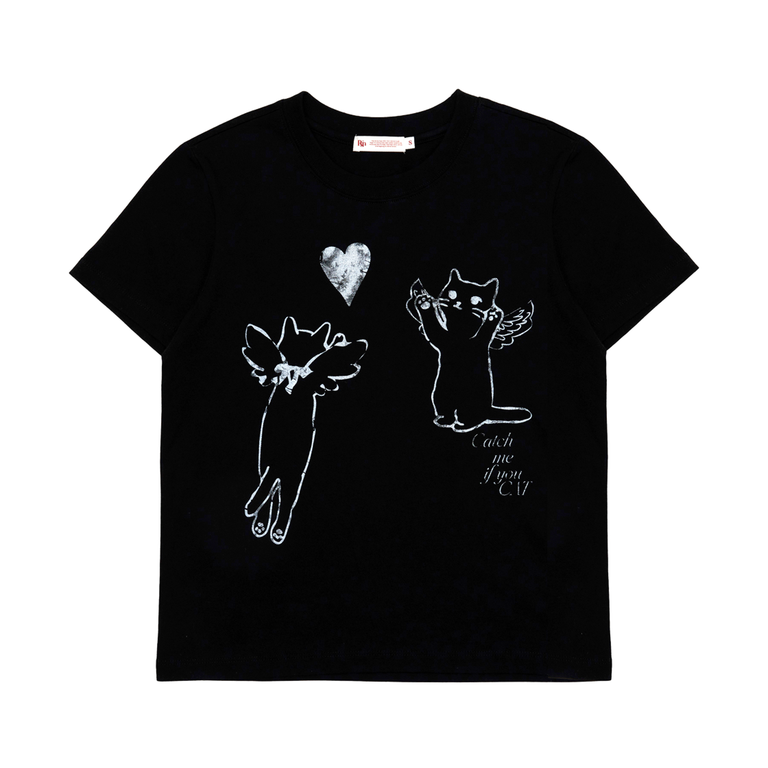로긴 앤 로지 엔젤 캣 프린티드 티셔츠 블랙