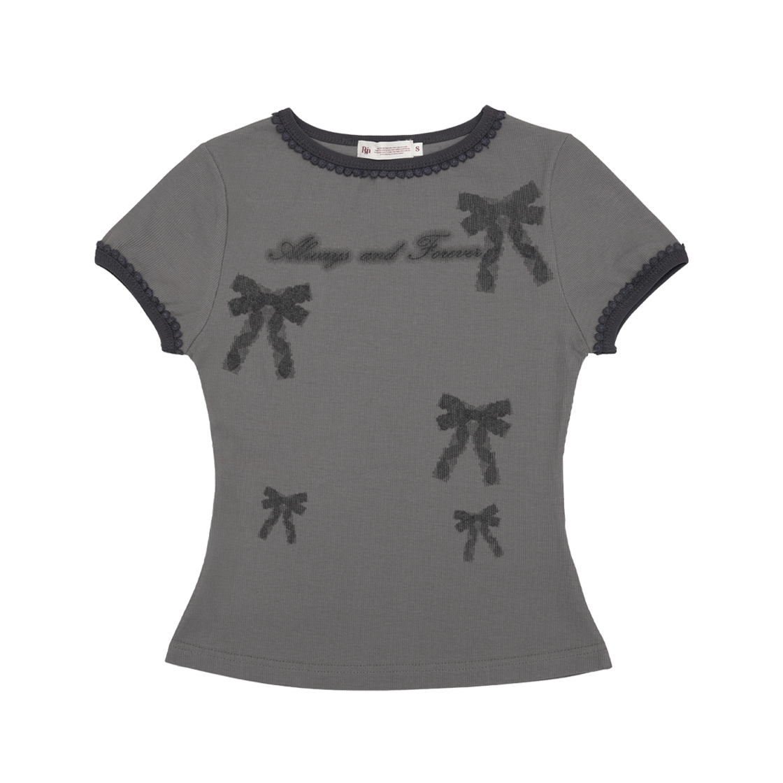 로긴 앤 로지 리본 프린티드 슬림 링거 티셔츠 라이트 그레이