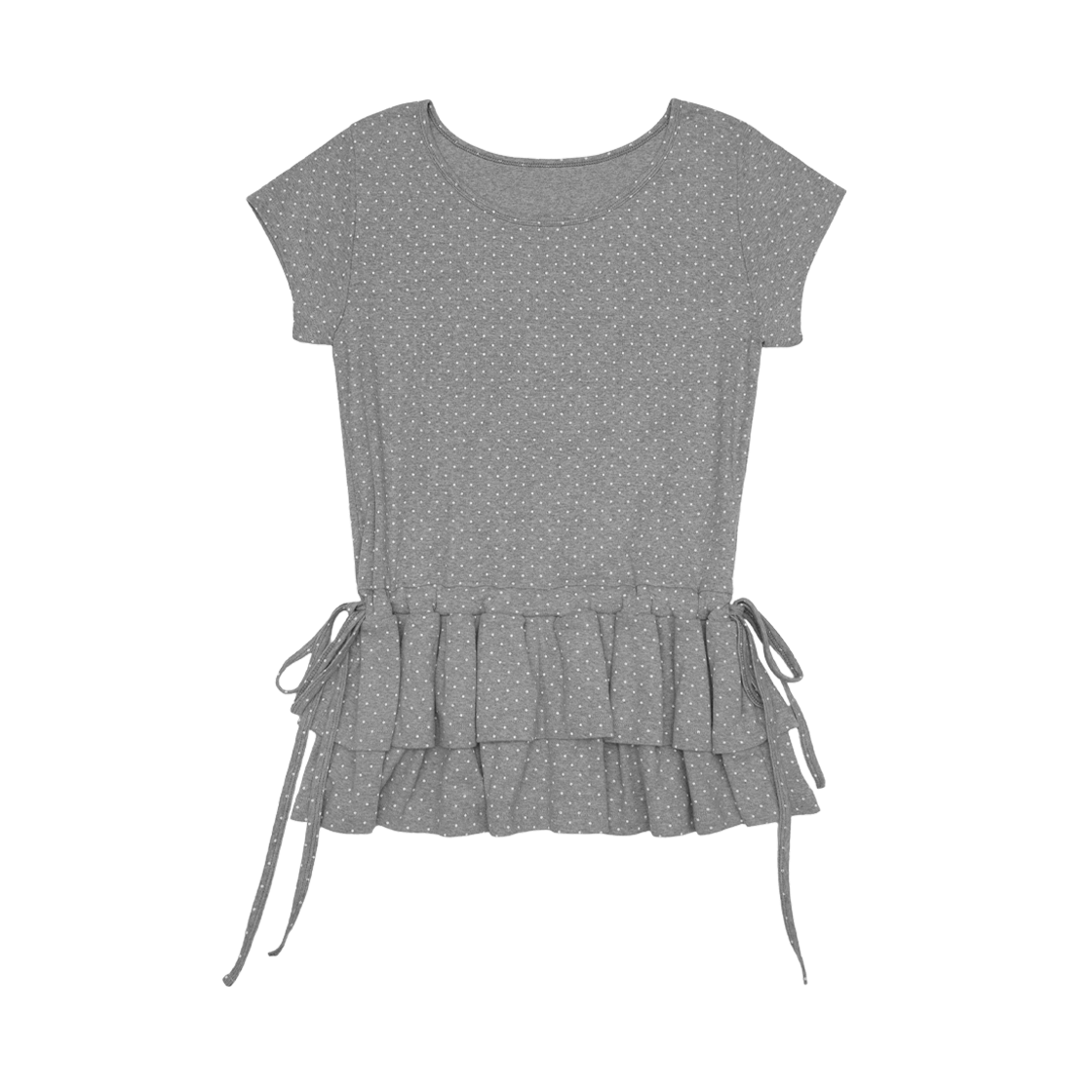 로긴 앤 로지 하프 프릴 도트 티셔츠 그레이