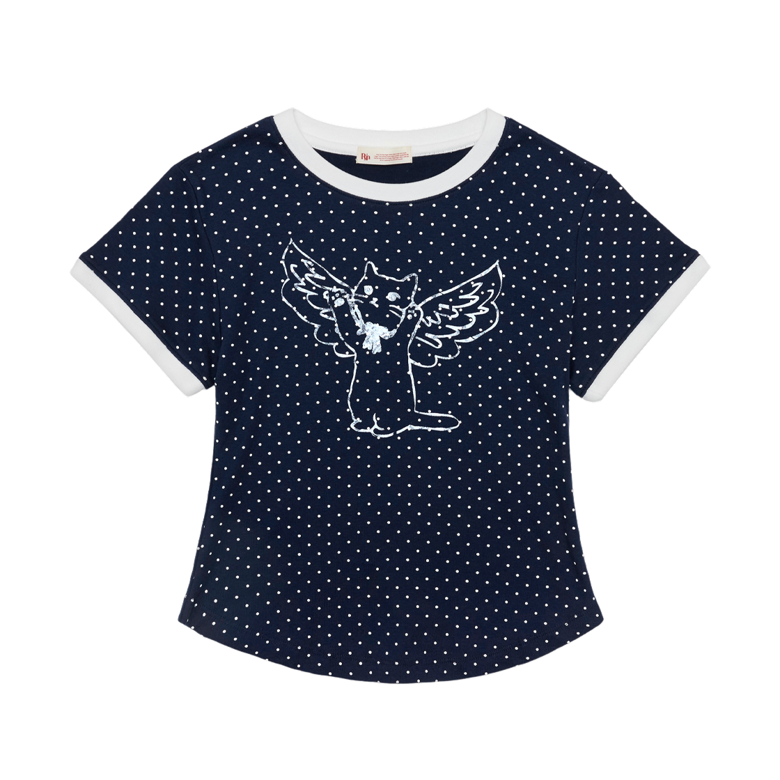 로긴 앤 로지 엔젤 캣 도트 링거 티셔츠 네이비