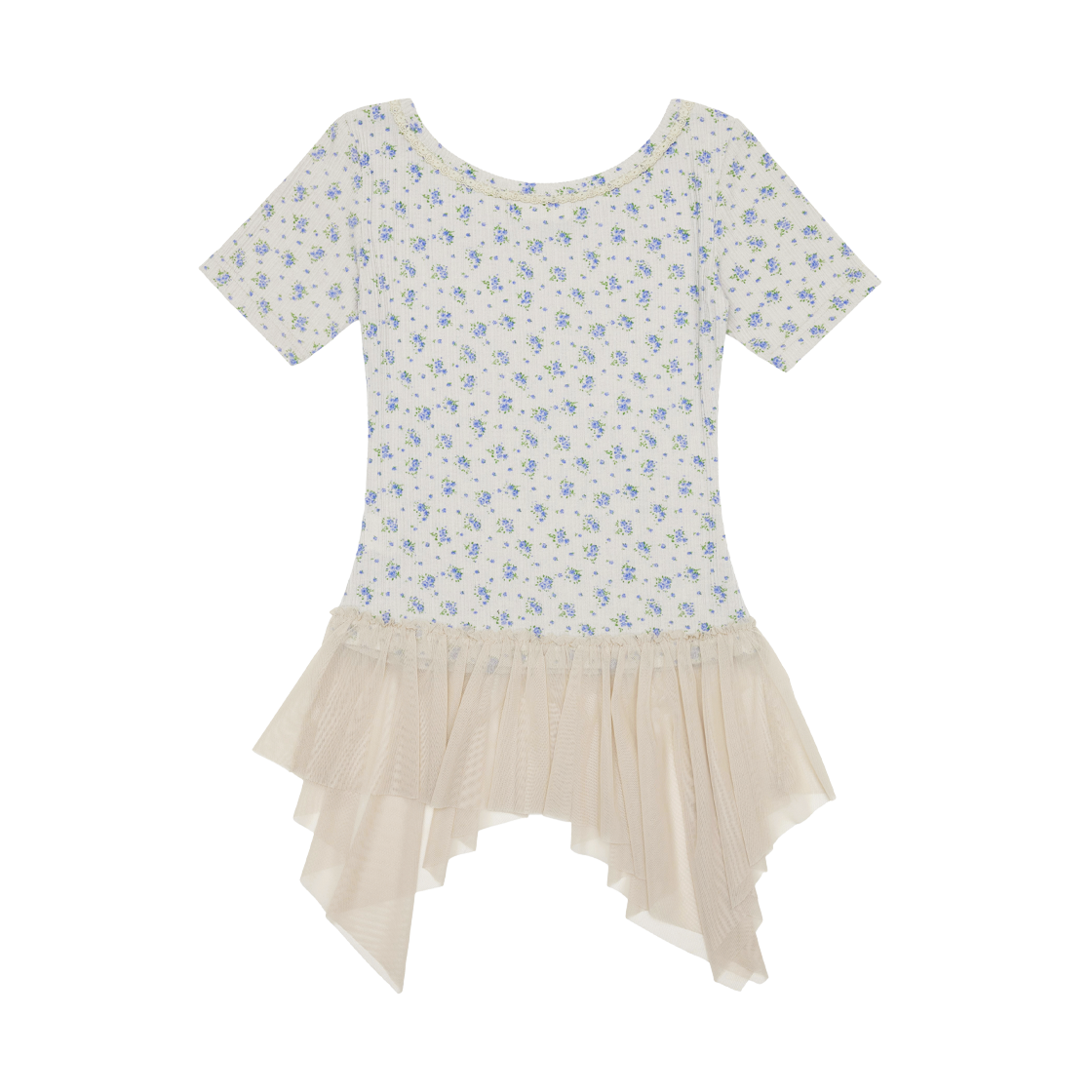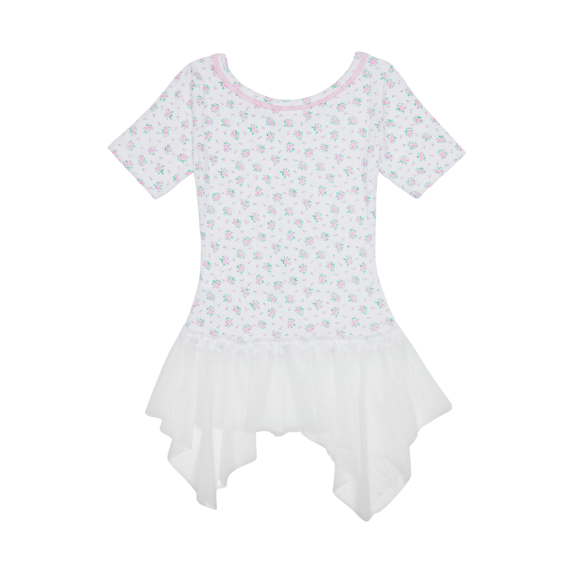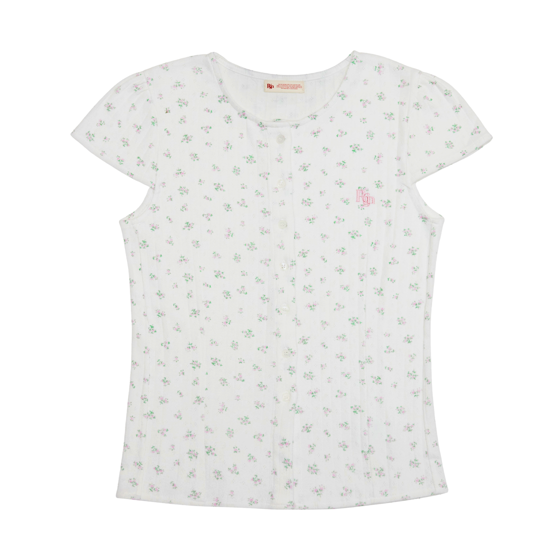 로긴 앤 로지 와플 플라워 프린티드. 캡 슬리브 화이트