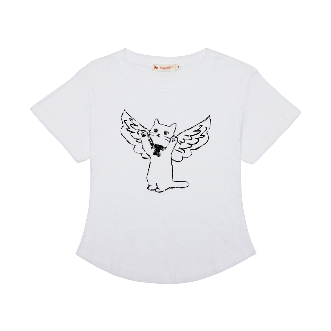 로긴 앤 로지 엔젤 캣 프린티드 티셔츠 화이트