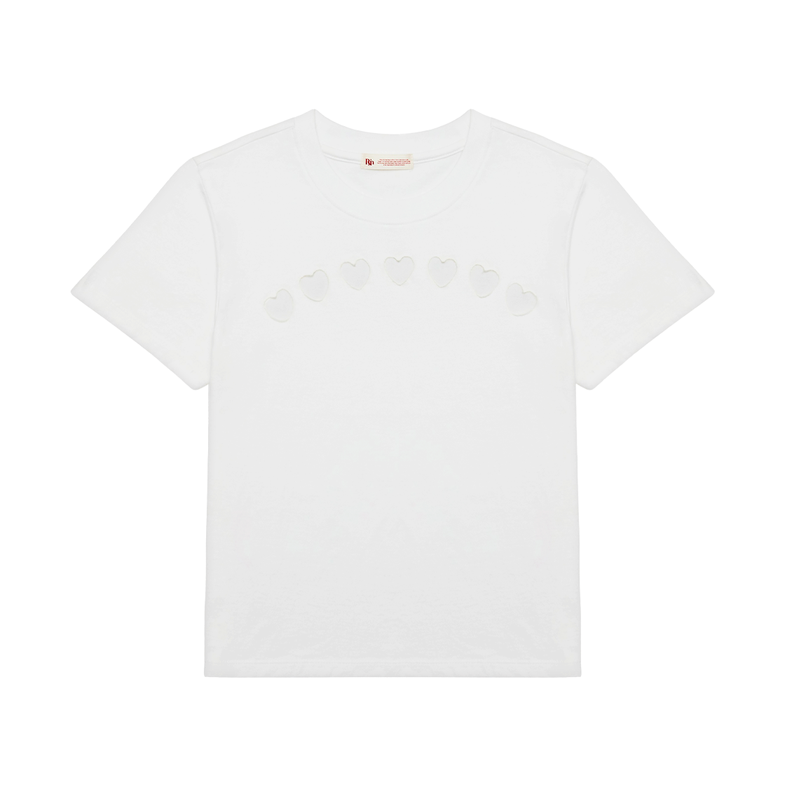 로긴 앤 로지 하트 펀칭 코튼 티셔츠 화이트