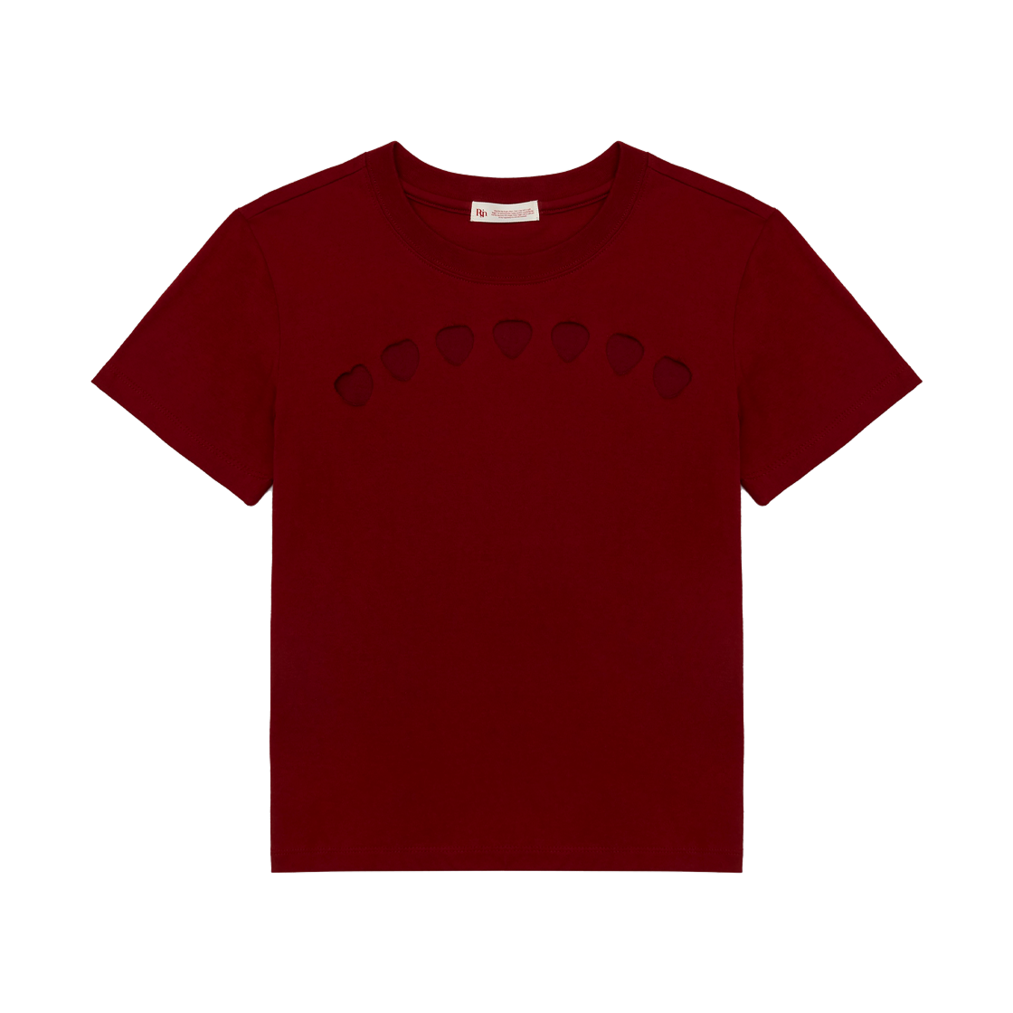 로긴 앤 로지 하트 펀칭 코튼 티셔츠 레드