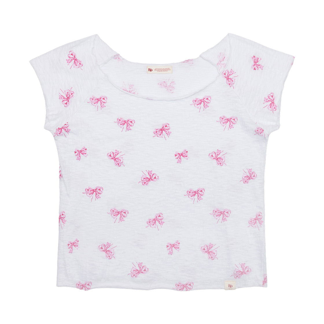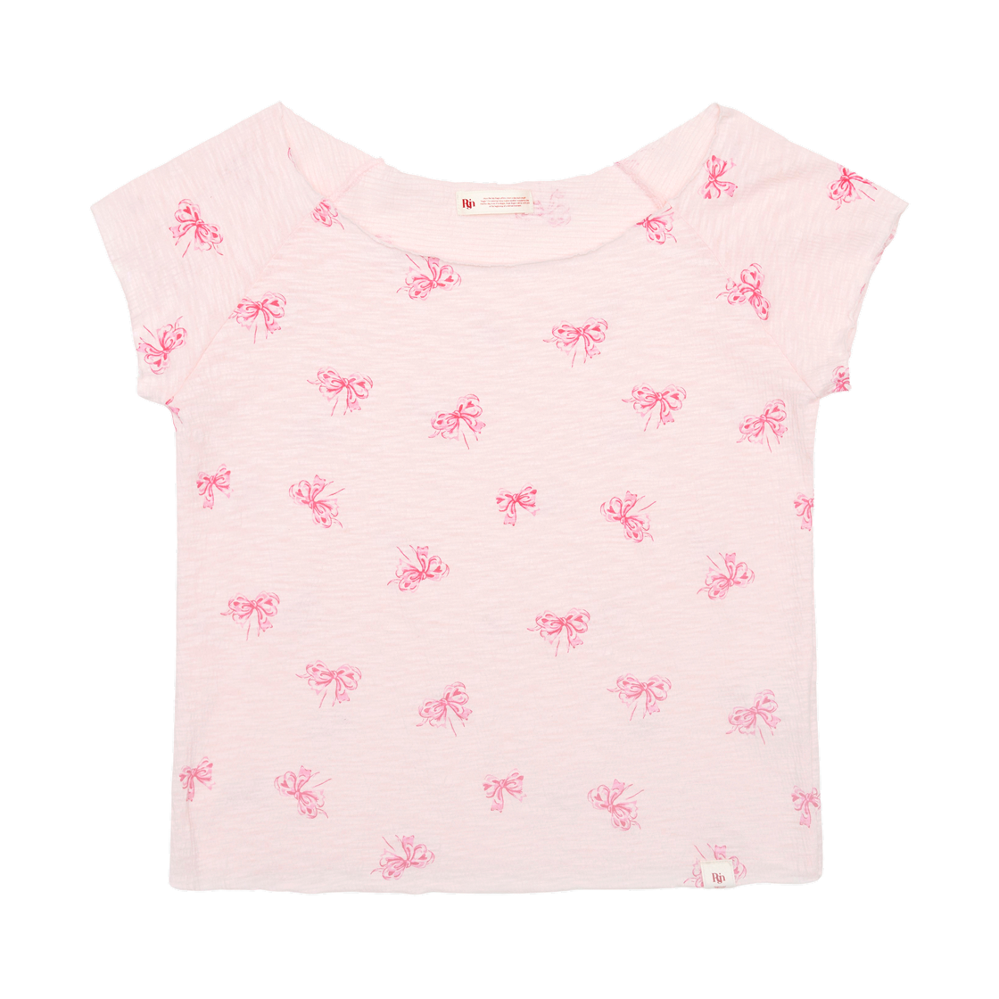 로긴 앤 로지 리본 프린티드 라운드 숄더 티셔츠 핑크