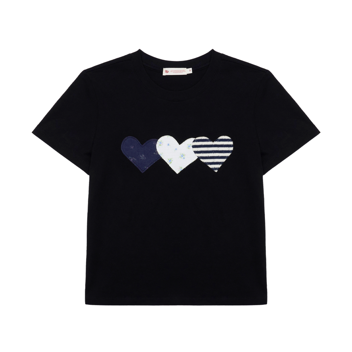 로긴 앤 로지 하트 패치 코튼 티셔츠 블랙