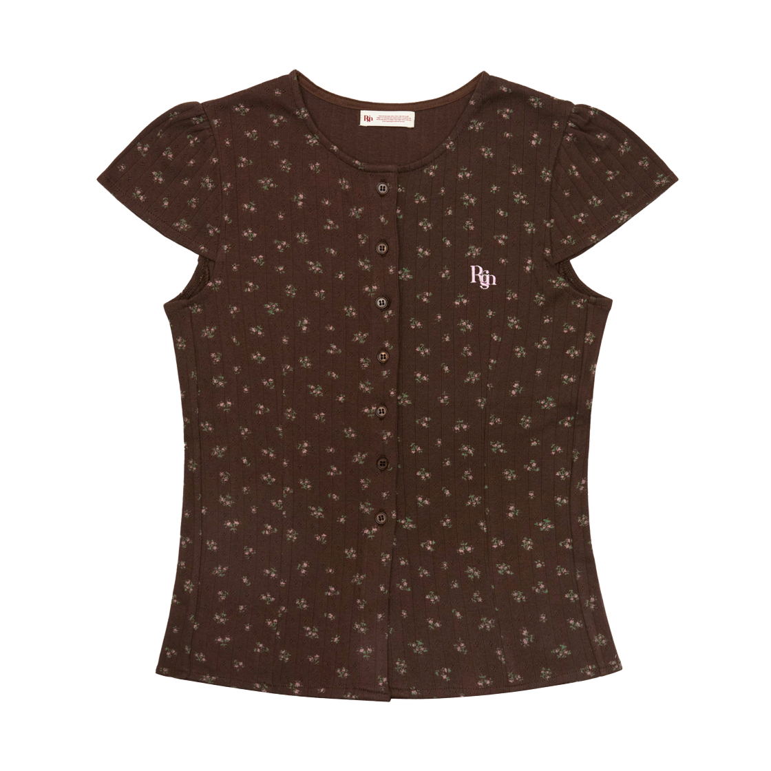 로긴 앤 로지 와플 플라워 프린티드 캡 슬리브 브라운
