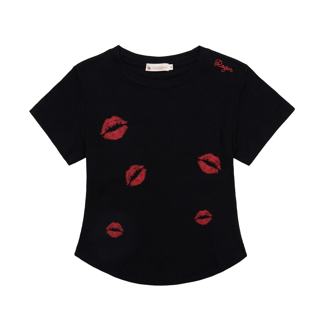 로긴 앤 로지 립 프린티드 루즈핏 티셔츠 블랙