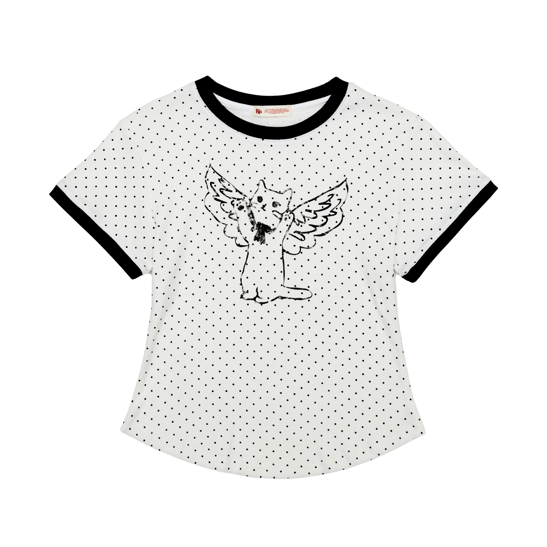 로긴 앤 로지 엔젤 캣 도트 링거 티셔츠 화이트