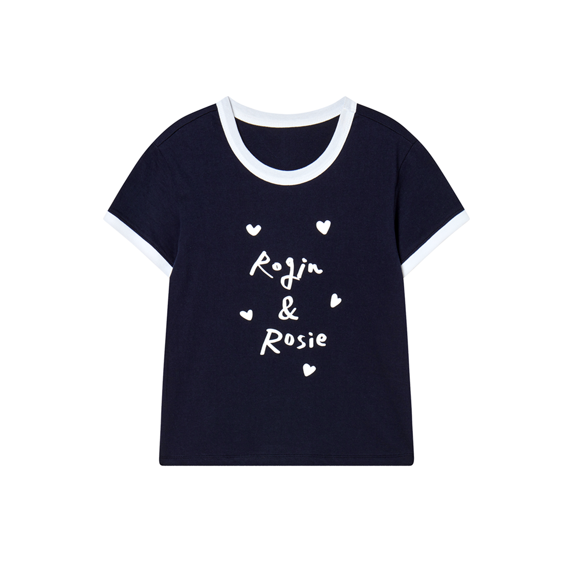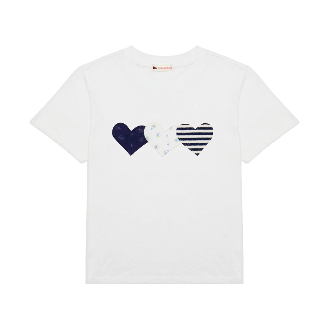 로긴 앤 로지 하트 프린티드 코튼 나그랑 티셔츠 화이트네이비