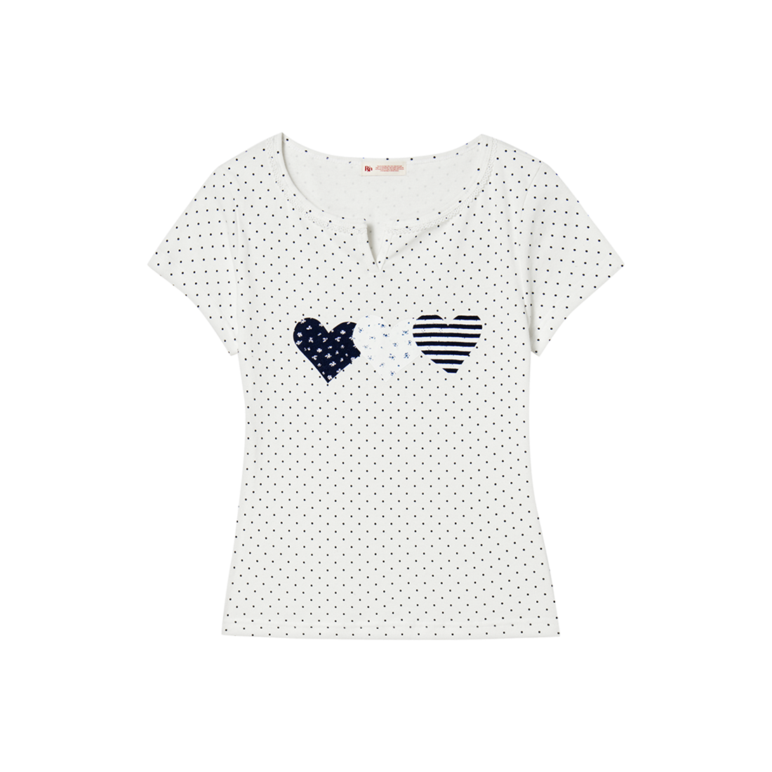 로긴 앤 로지 레이스 도트 포인트 하트 티셔츠 화이트