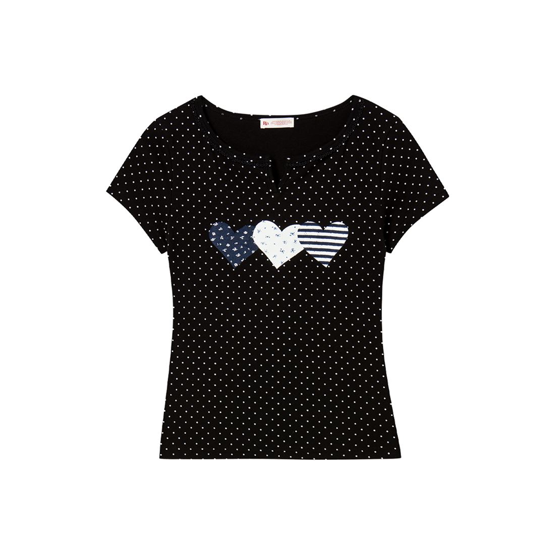 로긴 앤 로지 레이스 도트 포인트 하트 티셔츠 블랙
