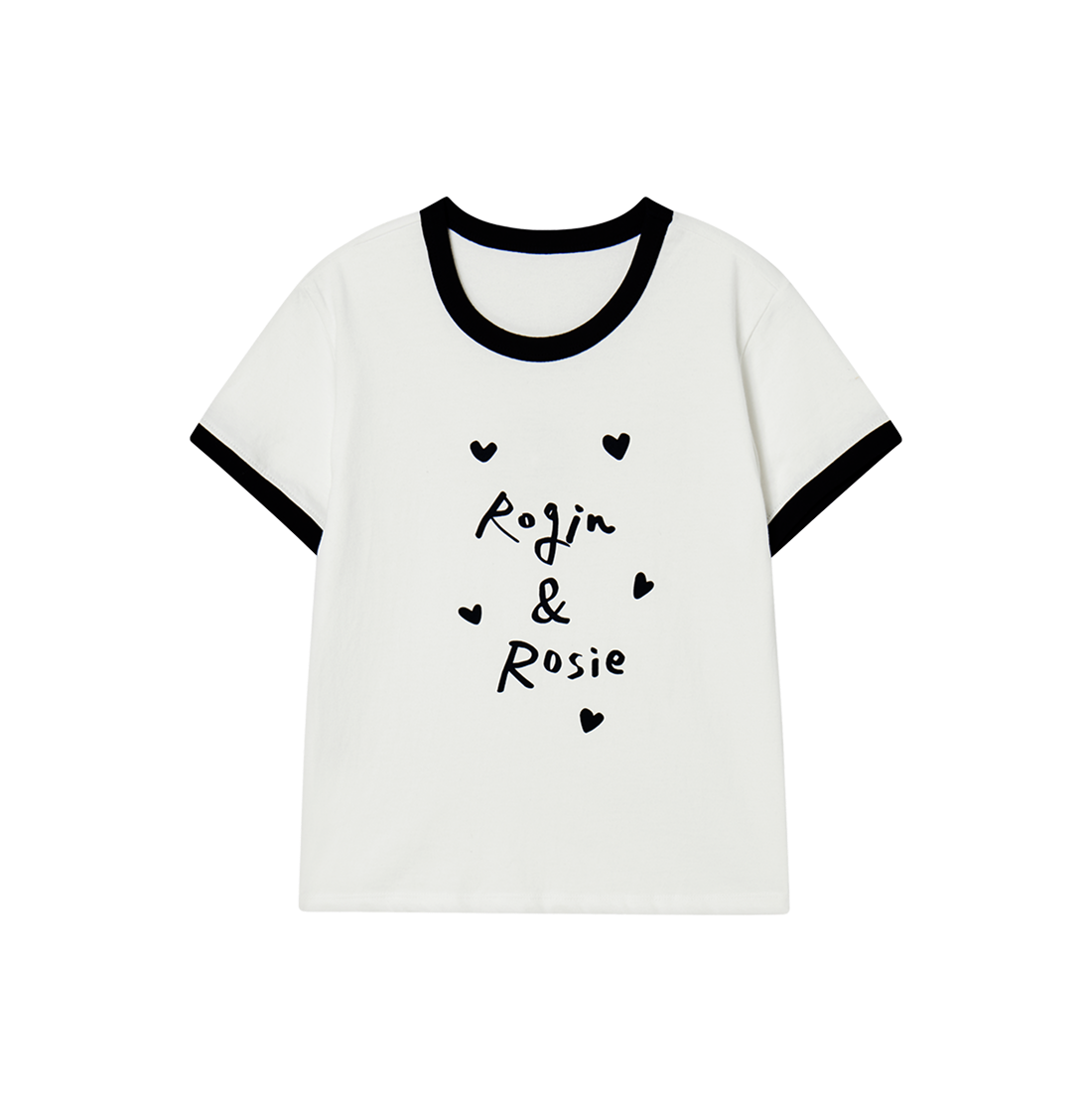 로긴 앤 로지 리본 프린티드 슬림 링거 티셔츠 아이보리
